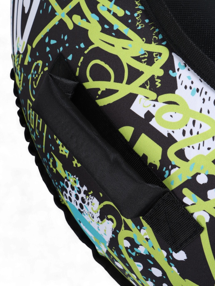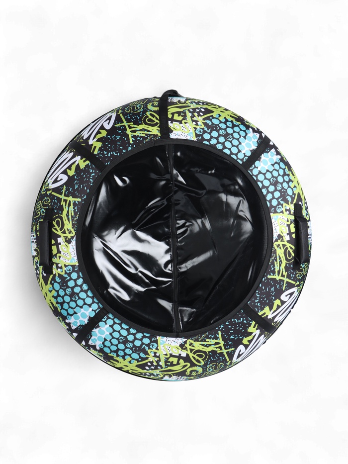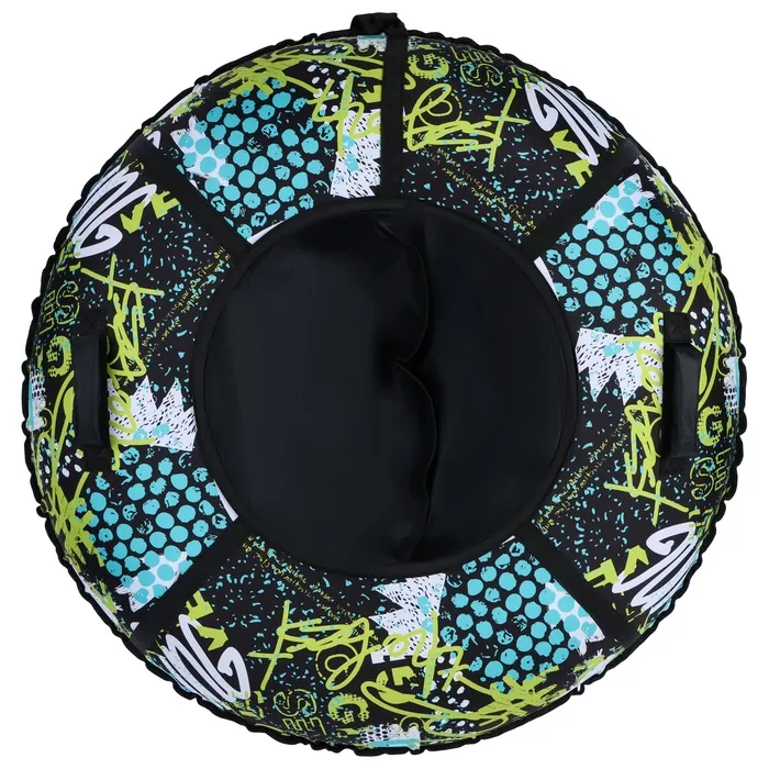 Дно тюбинга изготовлено из тентовой ткани плотностью 600 г/м², что гарантирует долгий срок службы и обеспечивает отличное скольжение. Снаряд оснащён безопасными ручками. Для тюбинга подойдёт камера 16 дюймов. Предназначен для детей от 12 лет.