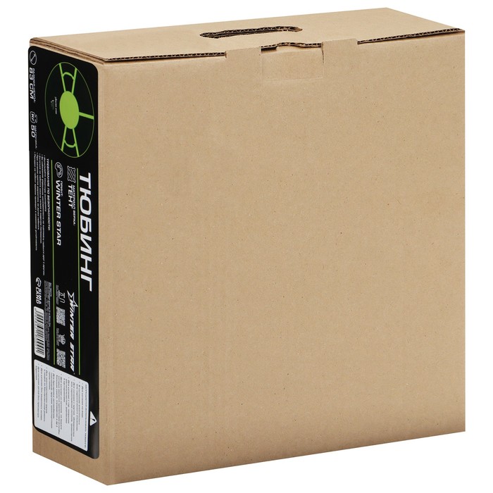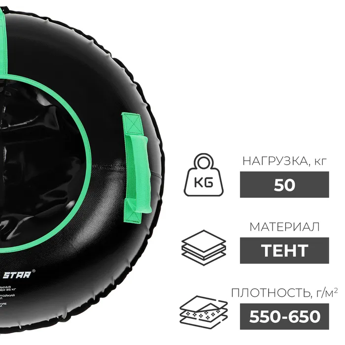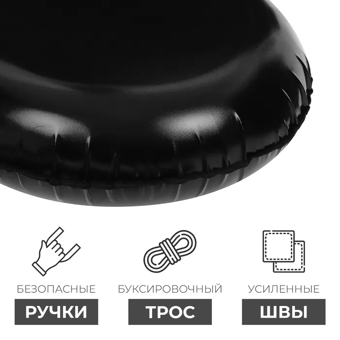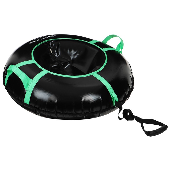 Дно тюбинга изготовлено из тентовой ткани, что гарантирует долгий срок службы и обеспечивает отличное скольжение. Снаряд оснащён безопасными ручками и молнией для быстрого доступа к камере. Имеет закрытую сердцевину — это исключает попадание снега внутрь. Для тюбинга подойдёт камера 13 дюймов. Предназначен для детей от 5 лет.