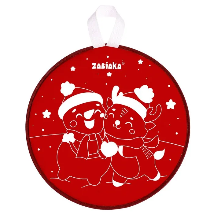 Дно тюбинга изготовлено из тентовой ткани плотностью 550–650 г/м², что гарантирует долгий срок службы и обеспечивает отличное скольжение. Снаряд оснащён безопасными ручками и молнией для быстрого доступа к камере. Имеет закрытую сердцевину, что исключает попадание снега внутрь. Для тюбинга подойдёт камера 14 дюймов. Предназначен для детей от 12 лет.