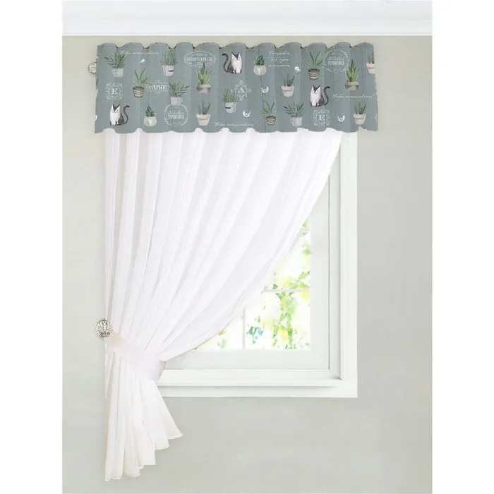 Размер ламбрекена - 250х40 см; Размер подхвата - 60х10 см.