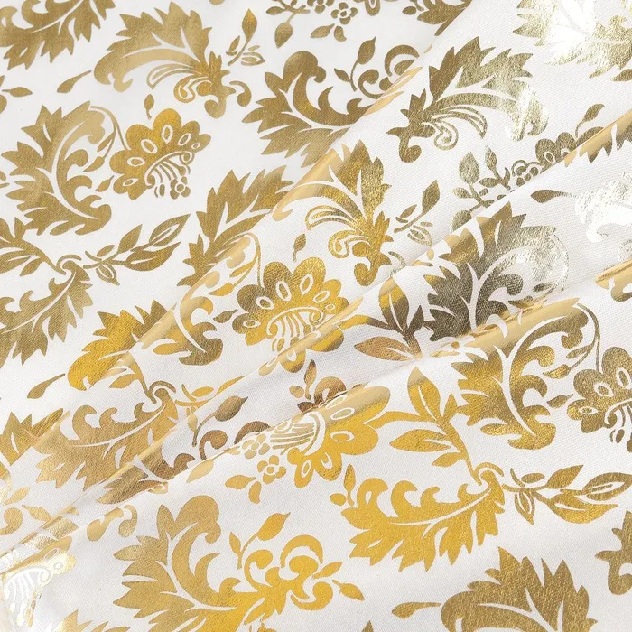 Ткань атлас для рукоделия и шитья, ширина 150 см, золотой узор на белом