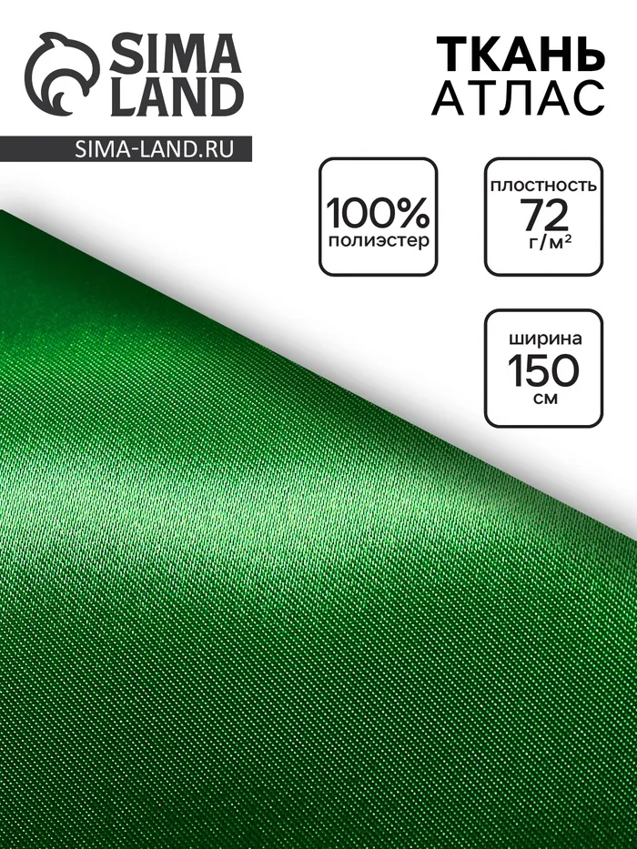 Ткань атлас для рукоделия и шитья, зелёная, ширина 150 см — Характеристики