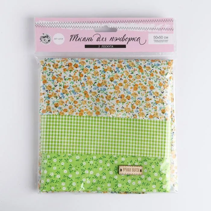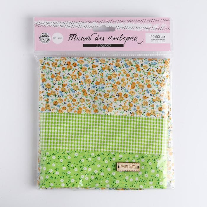 Ткань для пэчворка 3 лоскута «Весенний лужок», 50×50 см