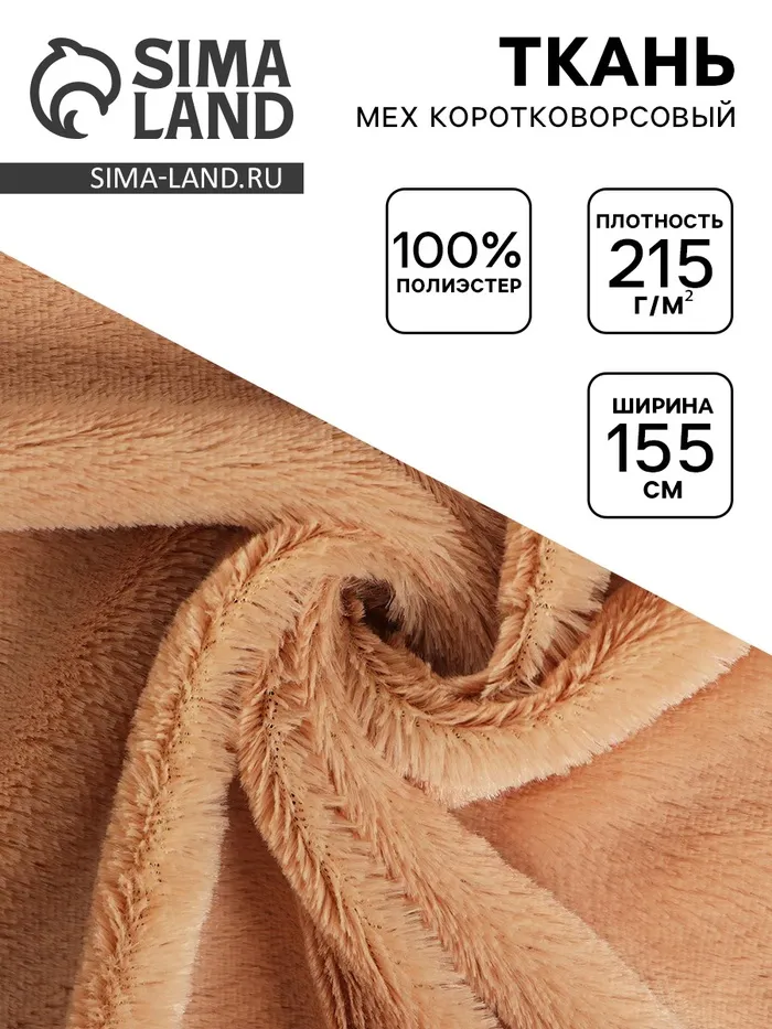 Ткань для рукоделия и шитья, мех коротковорсовой на трикотажной основе, ширина 155 см, светло-коричневая — Характеристики
