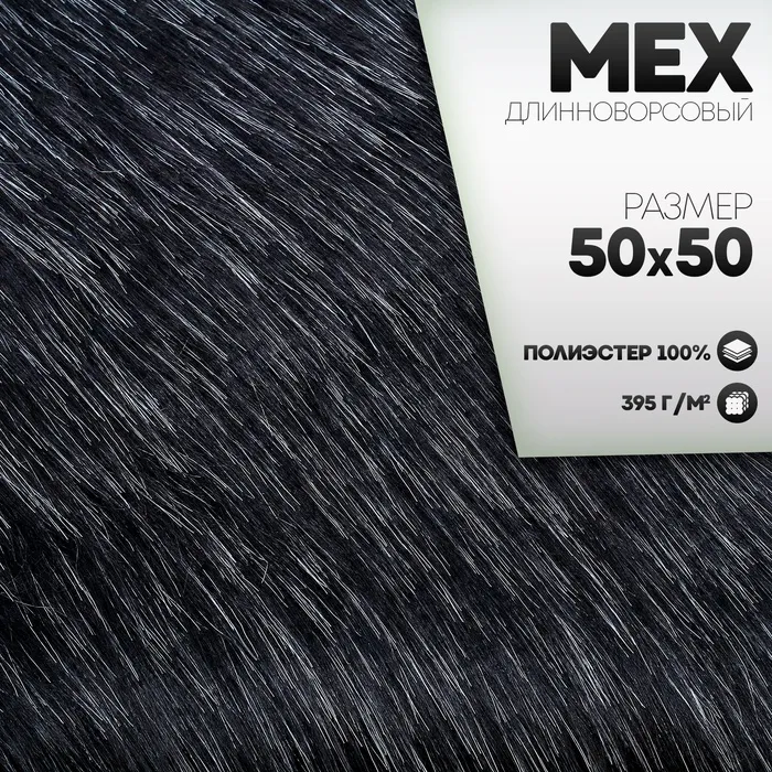 Ткань для рукоделия, мех длинноворсовый на трикотажной основе, тёмно-серая, лоскут 50×50 см — Характеристики