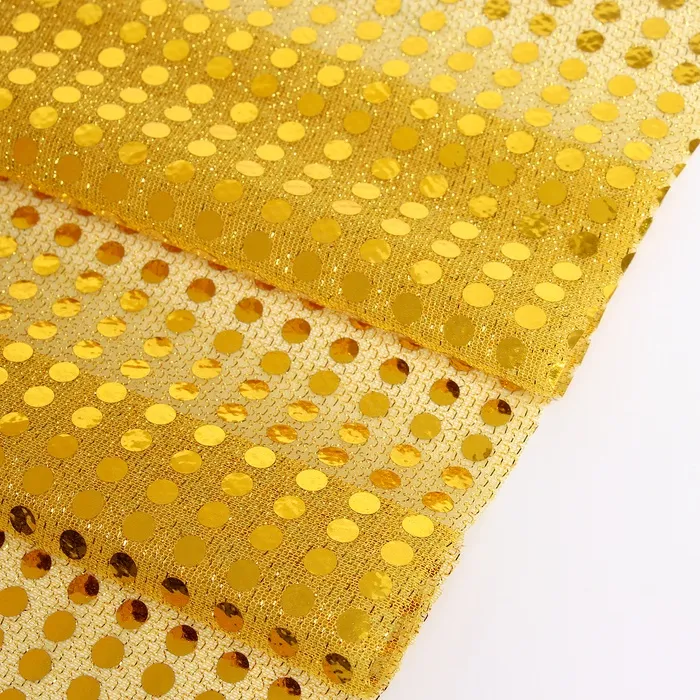 Ткань для рукоделия и шитья, трикотаж с нанесением фольгированного рисунка пайетками, ширина 120 см, жёлтая