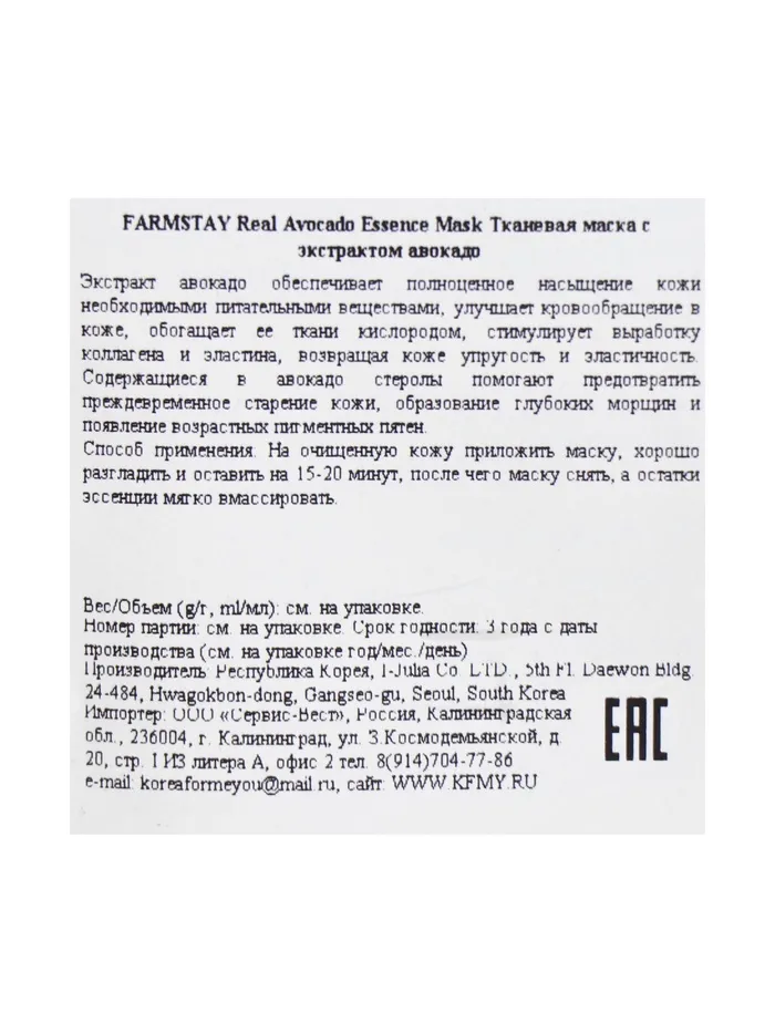 Средство для домашнего применения не менее полезно, чем салонные процедуры. Плотно облегающее кожу мягкое полотно пропитано сывороткой с экстрактом авокадо и гиалуроновой кислотой.