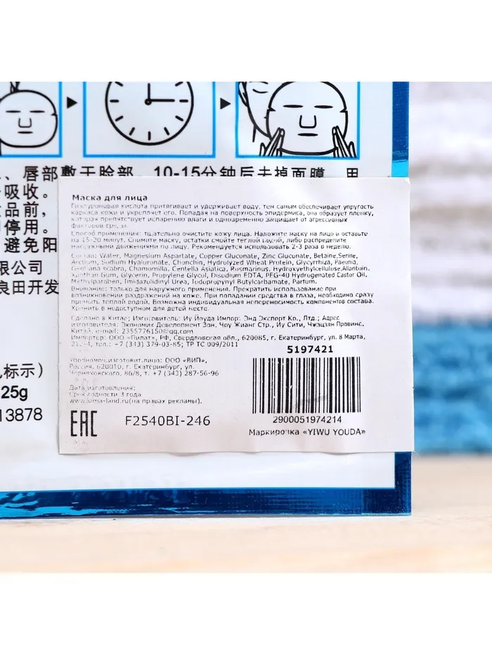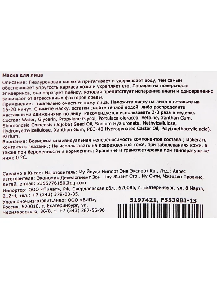 Способ применения: тщательно очистите кожу лица. Наложите маску на лицо и оставьте на 15-20 минут. Снимите маску, остатки смойте тёплой водой, либо распределите массажными движениями по лицу. Рекомендуется использовать 2-3 раза в неделю.