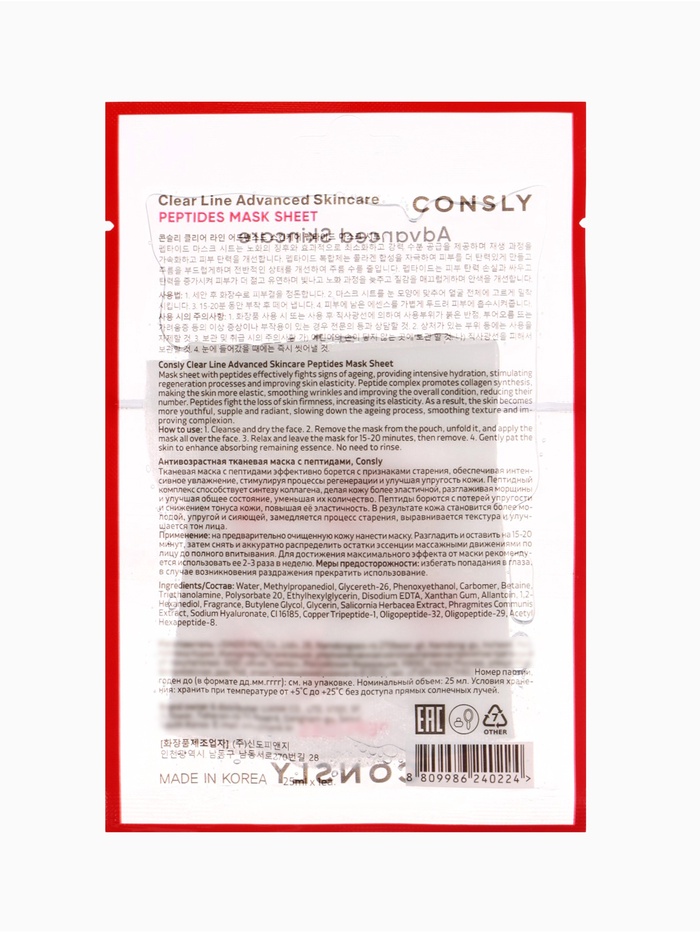 Тканевая маска Consly с пептидами предназначена для антивозрастного ухода за кожей лица. Основное действие маски заключается в борьбе с признаками старения, улучшении упругости и эластичности кожи, а также снижении выраженности морщин и мелких заломов. Компоненты маски направлены на стимуляцию естественных процессов регенерации кожи и поддержку её общего здоровья и внешнего вида. Пептидный комплекс помогает активизировать синтез коллагена, что способствует укреплению структуры кожи и делает её поверхность более гладкой и визуально молодой.