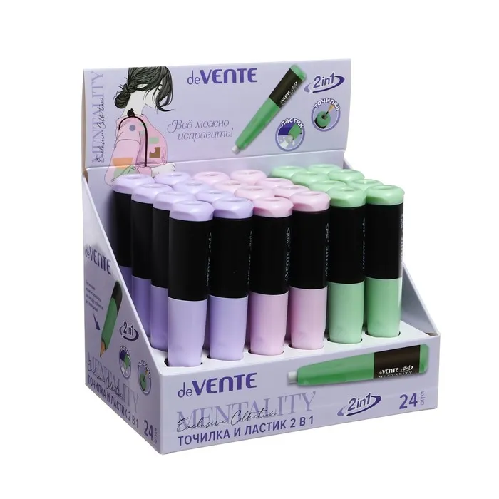 Точилка 1 отверстие с контейнером дизайн deVENTE Mentality с ластиком, микс 2 цвета — Характеристики