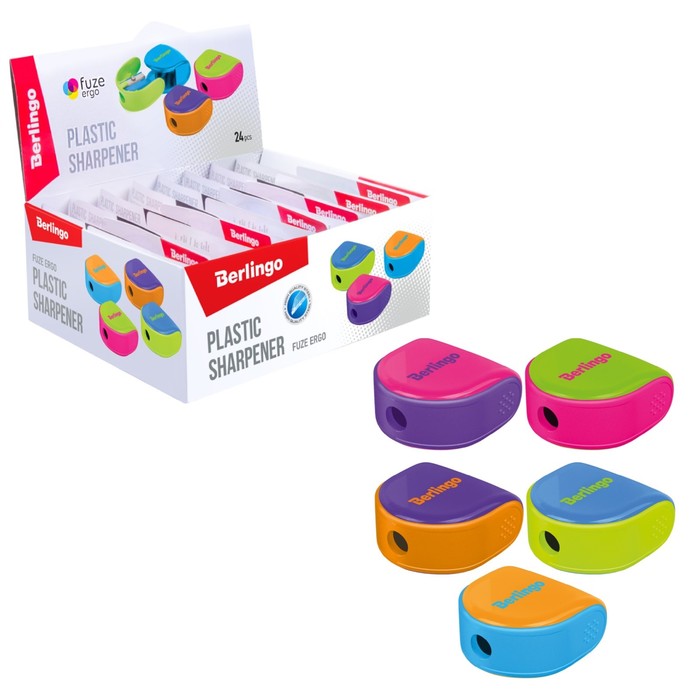 Точилка Berlingo «Fuze Ergo», 1 отверстие, с контейнером, пластиковая, блистер, европодвес, МИКС — Характеристики