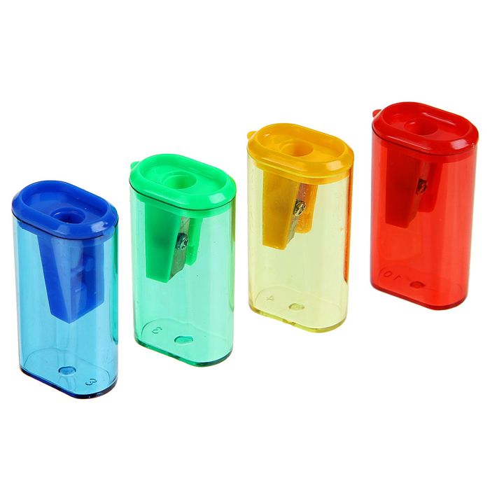 Точилка предмет №1 в паре с карандашом на рабочем столе в офисе, на школьной парте или дома.Эргономичный корпус выполнен из пластика ярких цветов.