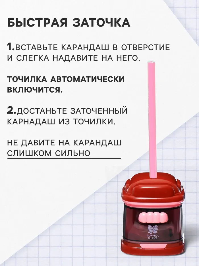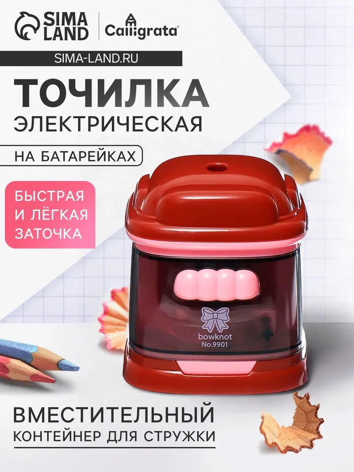 Точилка для карандашей электрическая Calligrata, с контейнером, на батрейках (в комплект не входят), бордовая — Характеристики