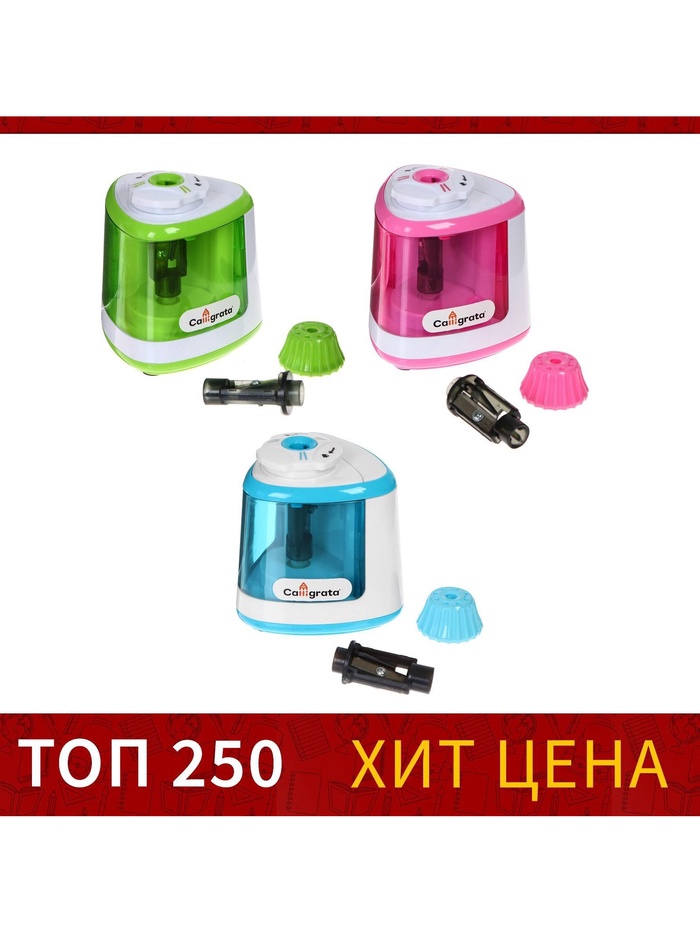 Точилка для карандашей электрическая Calligrata, с контейнером, на батрейках (в комплект не входят), цвет МИКС — Характеристики