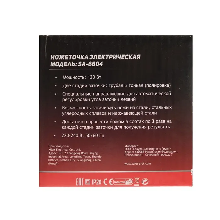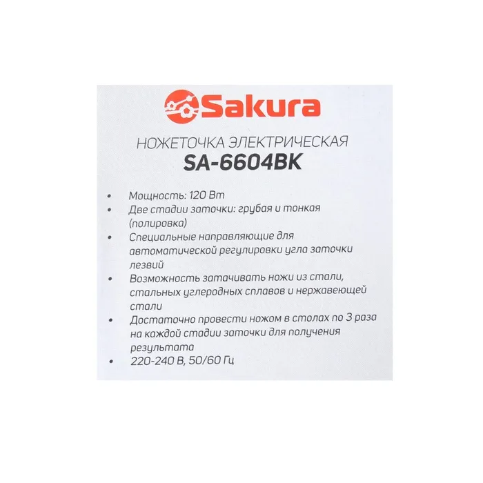 Точилка для ножей Sakura SA-6604BK, электрическая, 120 Вт, чёрная — Характеристики