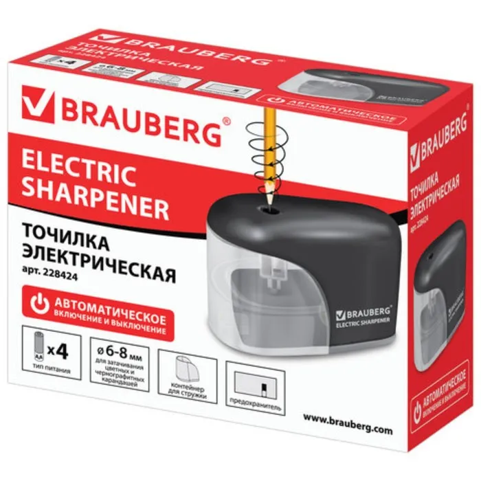 Точилка электрическая 1 отверстие BRAUBERG "Black Jack", пит 4 АА доп смен лезв 228424 — Характеристики
