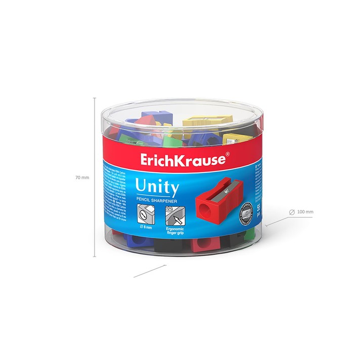 Точилка ErichKrause Unity, 1 отверстие диаметром 8 мм, МИКС — Характеристики