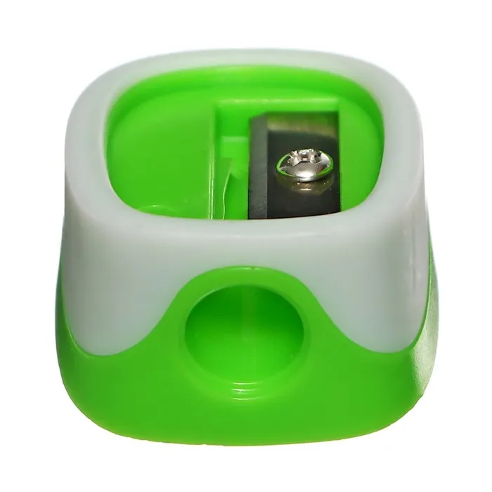 Точилка предмет №1 в паре с карандашом на рабочем столе в офисе, на школьной парте или дома.Эргономичный корпус выполнен из пластика ярких цветов.
