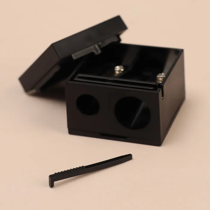Чтобы карандаши для губ и глаз были острыми и оставляли после себя ровные и чёткие контуры, воспользуйтесь косметической точилкой. Эта небольшая помощница быстро приведёт в порядок вашу декоративную косметику, а опилки соберутся в специальном контейнере, откуда вы с лёгкостью сможете их убрать.