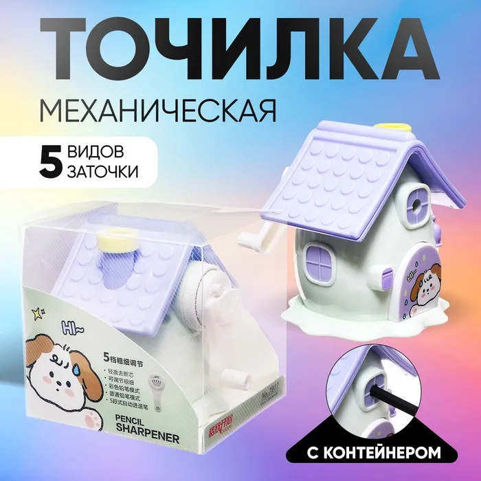 Точилка механическая с контейнером, 5 видов заточки, Домик белый — Характеристики