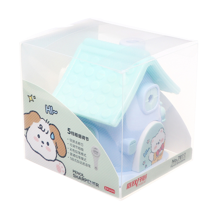 Точилка механическая с контейнером, 5 видов заточки, Домик синий — Характеристики