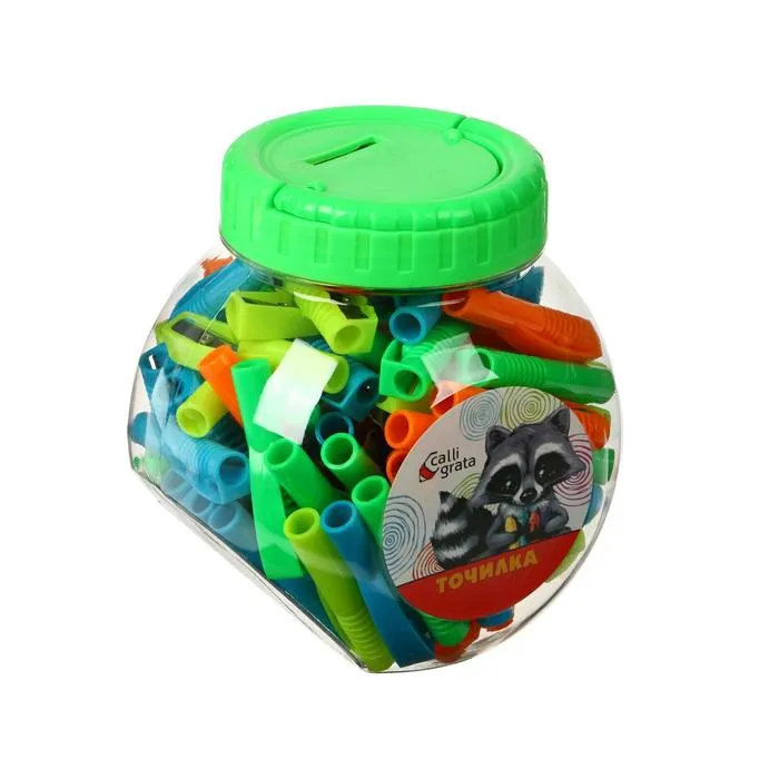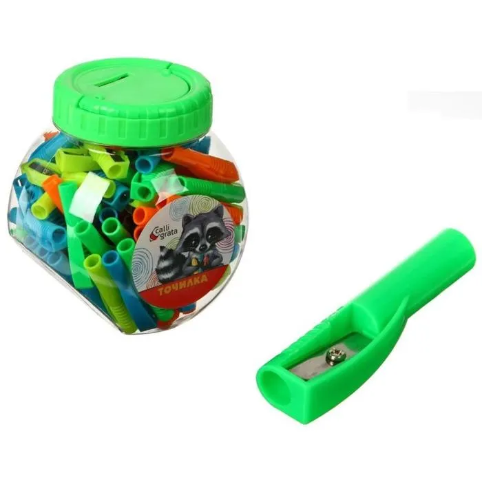Точилка предмет №1 в паре с карандашом на рабочем столе в офисе, на школьной парте или дома.Эргономичный корпус выполнен из пластика ярких цветов.