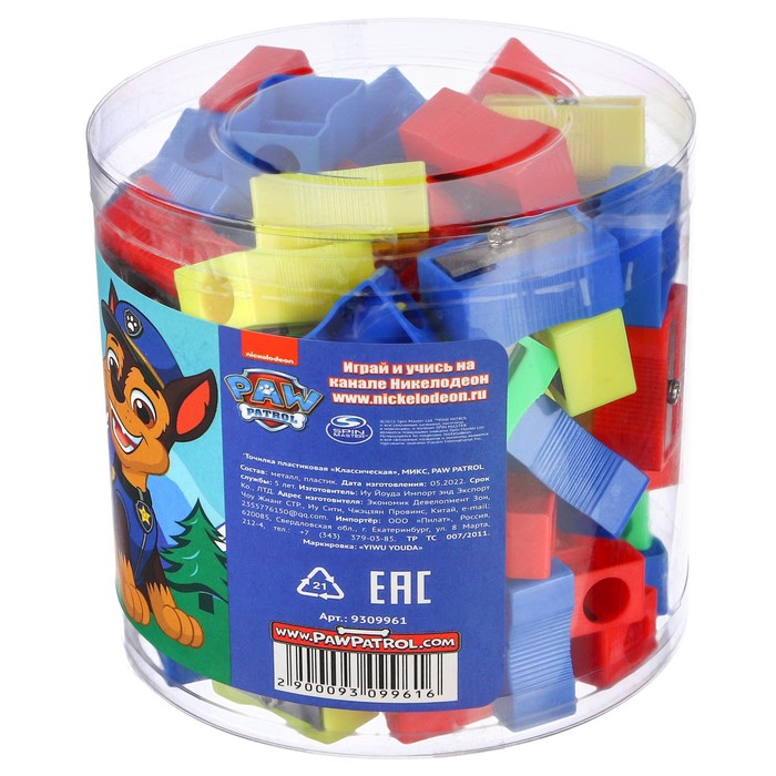 Точилка пластиковая «Классическая», МИКС, «Щенячий патруль» — Характеристики