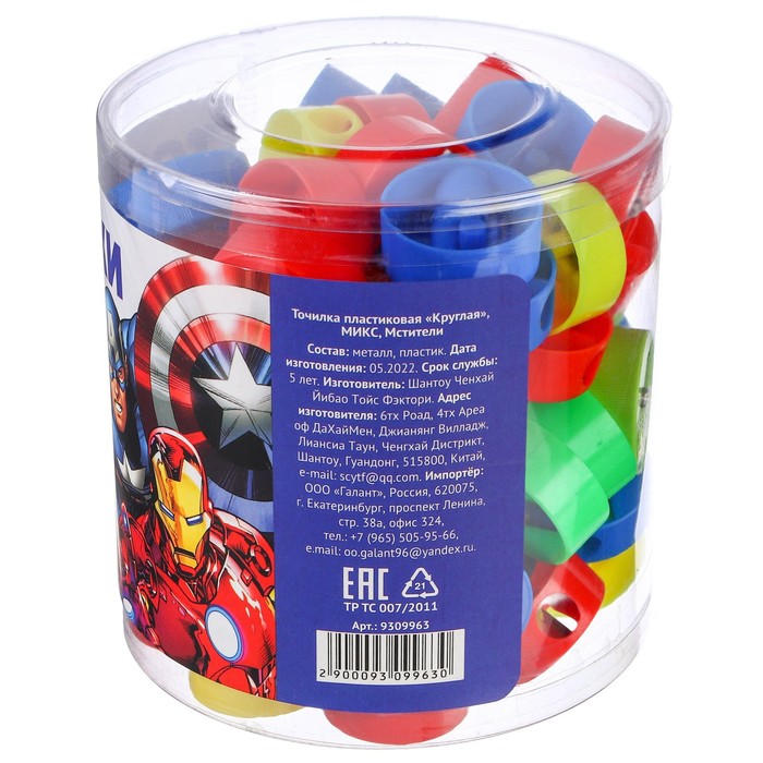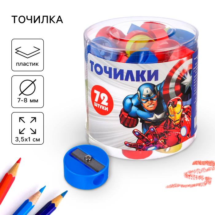 Точилка пластиковая «Круглая», МИКС, «Мстители» — Характеристики