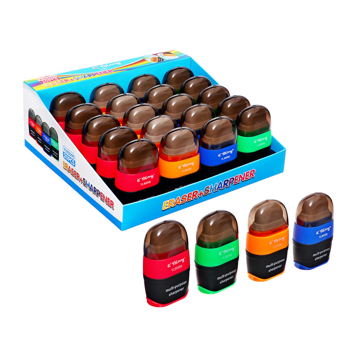 Точилка с контейнером двойная Универсальная с ластиком МИКС — Характеристики