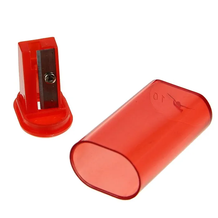 Точилка предмет №1 в паре с карандашом на рабочем столе в офисе, на школьной парте или дома.Эргономичный корпус выполнен из пластика ярких цветов.
