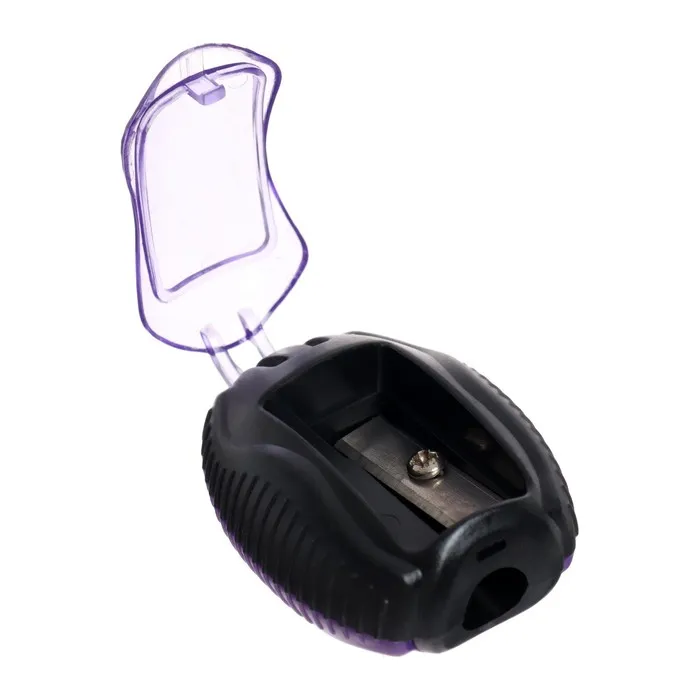 Точилка предмет №1 в паре с карандашом на рабочем столе в офисе, на школьной парте или дома.Эргономичный корпус выполнен из пластика ярких цветов.