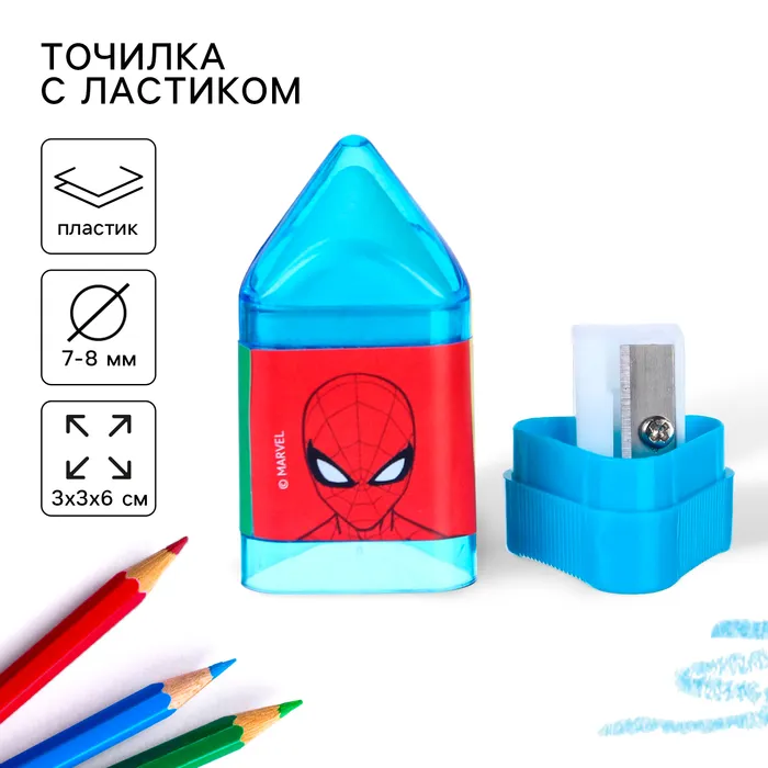 Точилка с ластиком, пластиковая, «Человек-паук» — Характеристики