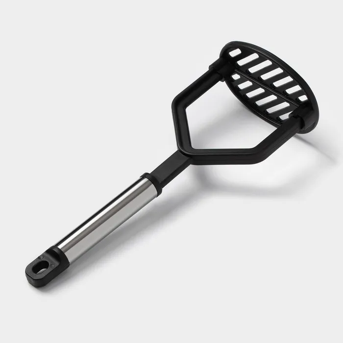 Толкушка Доляна «антрацитовый блеск», 25 см из практичного нейлона предназначена для быстрого и качественного приготовления картофельного пюре. Удобная конструкция предлагаемого инструмента позволяет получить воздушную массу удивительно быстро и без лишних усилий.