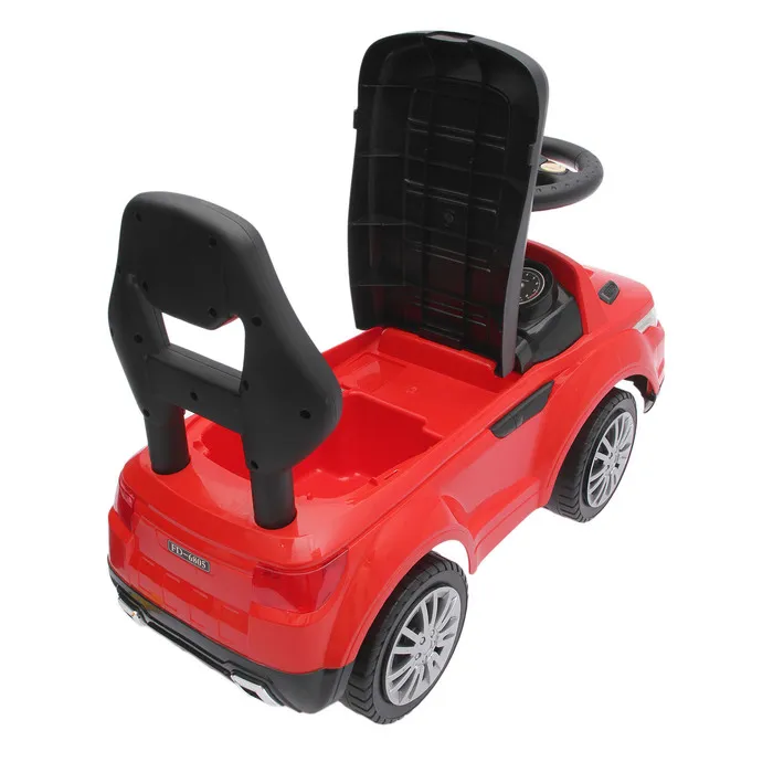 Толокар «Ровер» — это первоклассное транспортное средство для активного малыша. Оно выполнено в виде внедорожника с большими колёсами. Под водительским сиденьем находится вместительный отсек для игрушек. При желании спинку можно отсоединить. Такая машина подойдёт для катания дома и на улице.