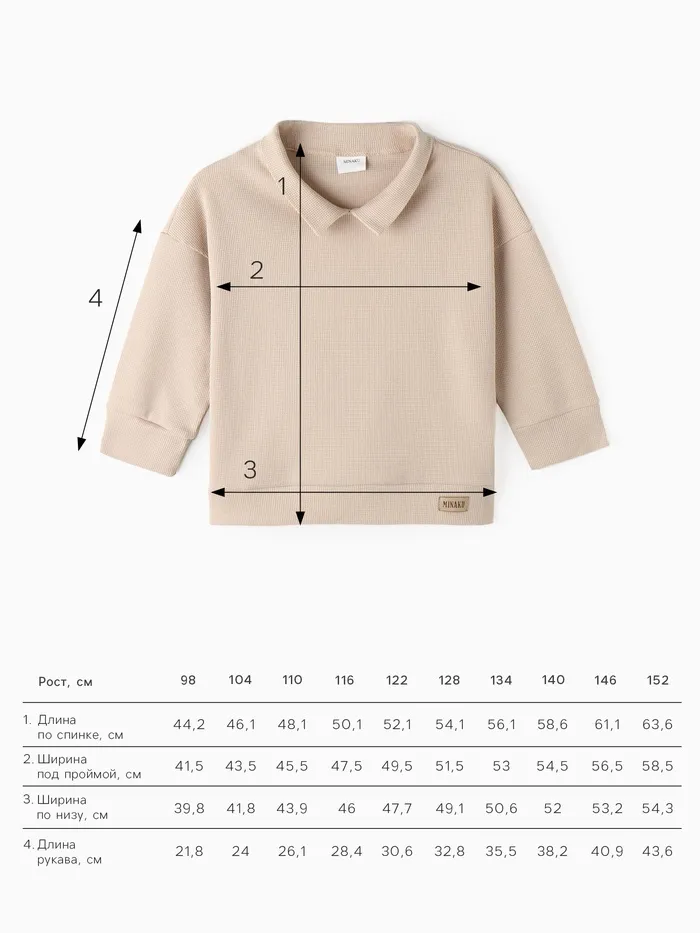 Толстовка детская MINAKU, бежевая, рост 104 см — Характеристики