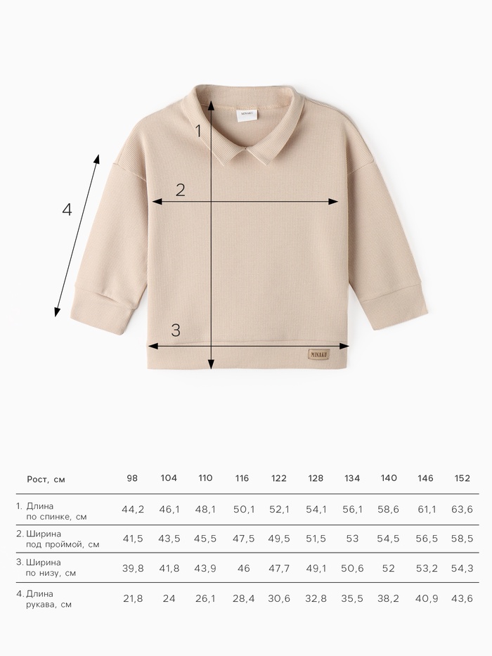 Толстовка детская MINAKU, бежевая, рост 152 см — Характеристики
