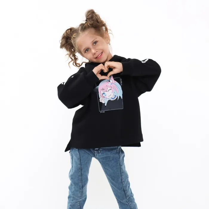 Толстовка для девочки, цвет черный, рост 104 см — Характеристики