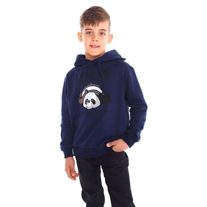 Толстовка для мальчика НАЧЁС, цвет тёмно-синий/панда, рост 140 см