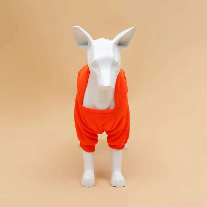 Элегантный дизайн: Толстовка выполнена в насыщенном оранжевом цвете, который добавляет уют и отлично сочетается с разными аксессуарами. Такой универсальный цвет подходит как для прогулок в парке, так и для домашних посиделок, делая образ вашего питомца стильным и гармоничным.