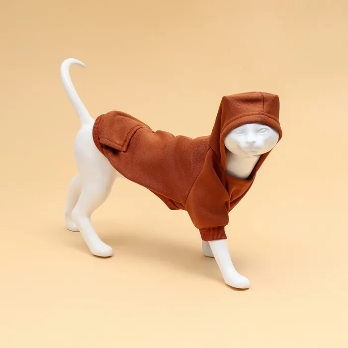 С этой коричневой толстовкой с капюшоном ваш питомец будет не только выглядеть стильно, но и оставаться в тепле и комфорте. Подарите ему уют в холодные дни и сделайте прогулки незабываемыми!