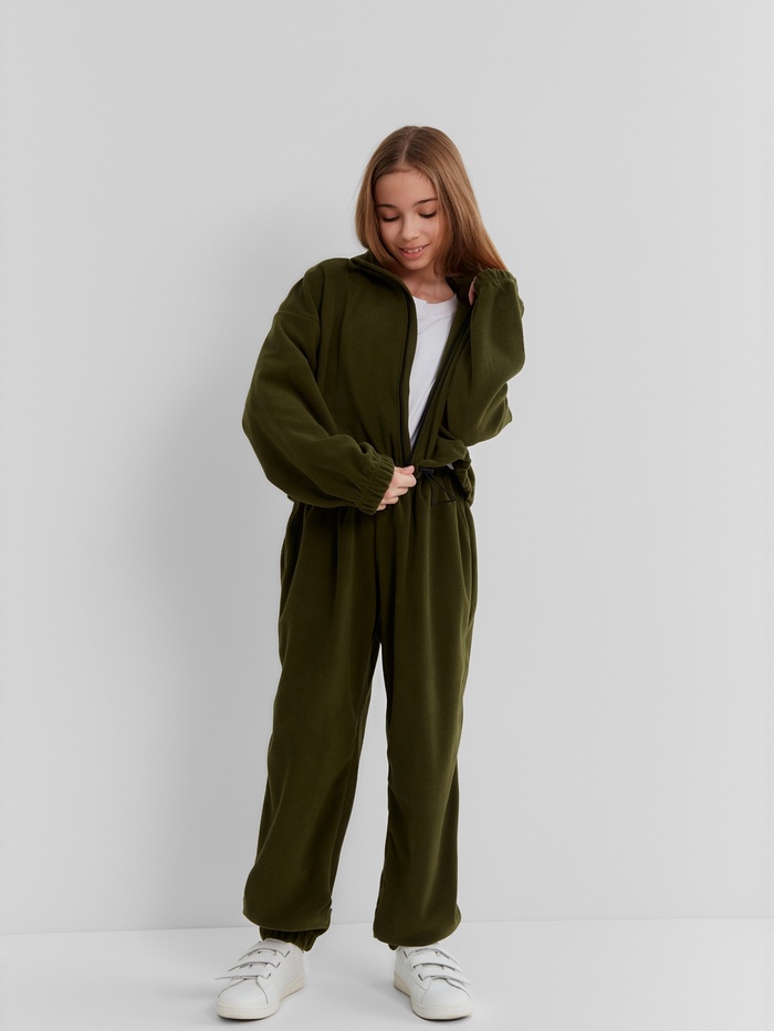 Толстовка флисовая для девочки MINAKU: Fleece Soft, хаки, рост 158 см