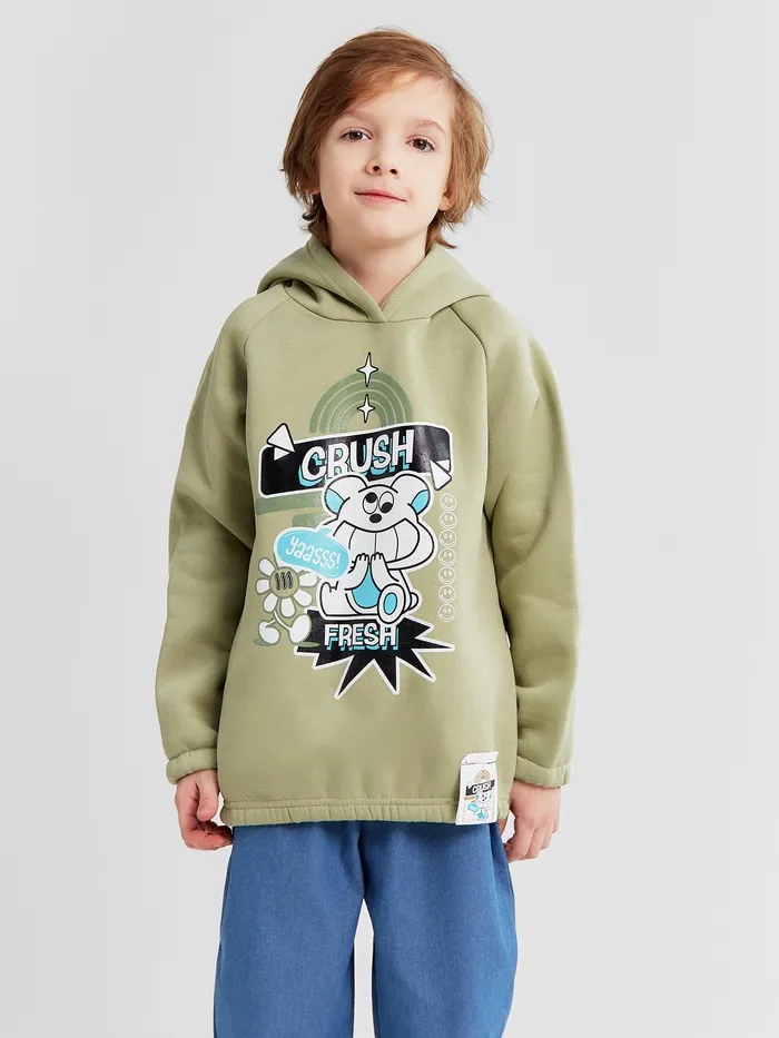 Толстовка (худи) детская MINAKU: CRUSH, оливковая, рост 146 см — Характеристики
