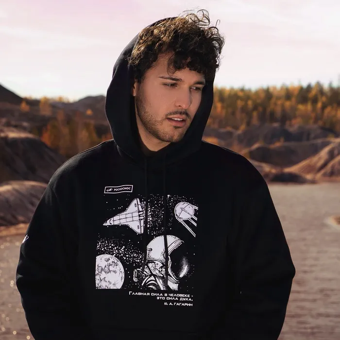 Толстовка сочетает в себе элементы спортивного и повседневного стиля. Капюшон обеспечивает защиту от ветра, дождя или солнца. Толстовка дополняет гардероб и помогает создать яркий и стильный образ. Уникальный дизайн лицензирован государственной корпорацией «Роскосмос».