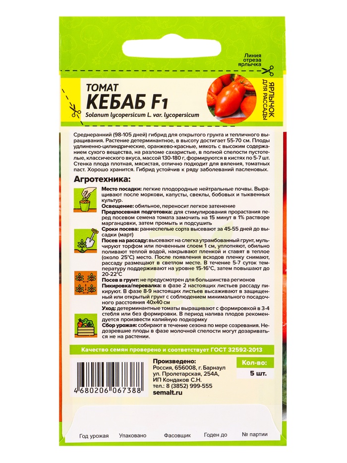 Томат Кебаб F1/Cем Алт/цп 5 шт. НОВИНКА! — Характеристики