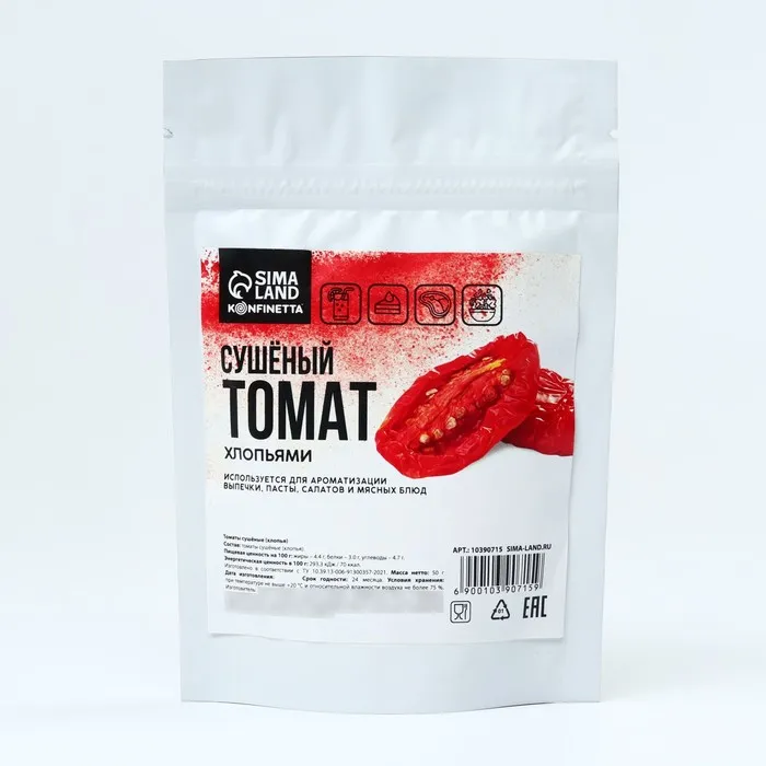 Томат сушеный хлопьями для декора и ароматизации выпечки, рулетов и вторых блюд, 50 г. — Характеристики