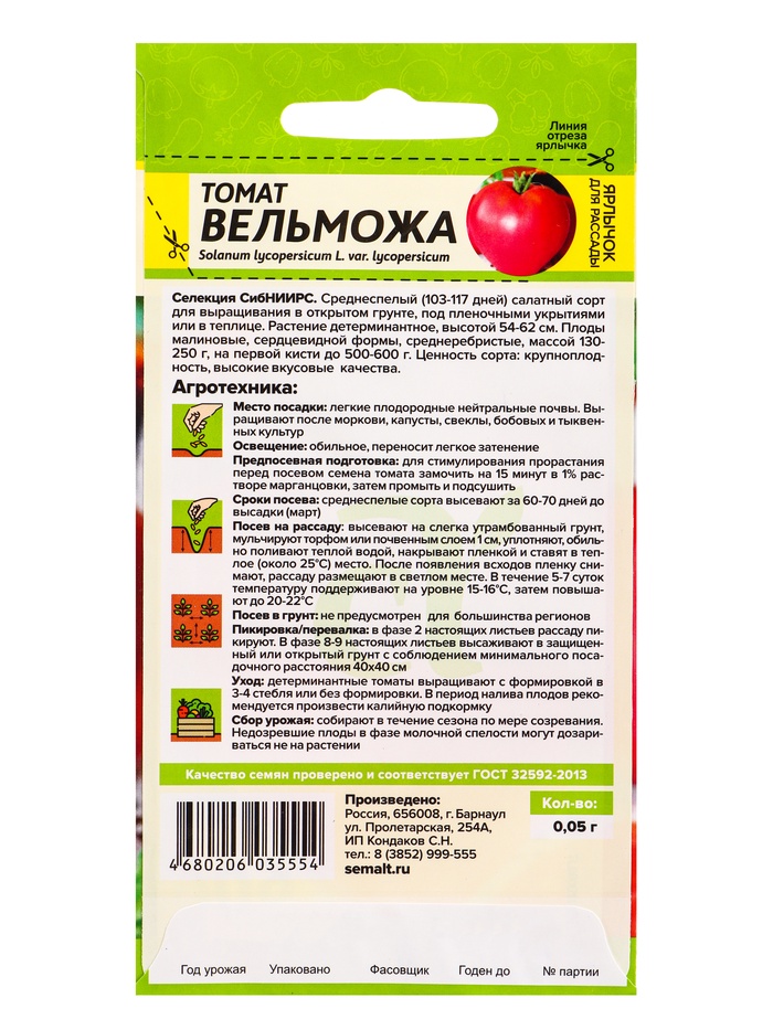 Томат Вельможа/Сем Алт/цп 0,05 гр. Сибирская Селекция! — Характеристики