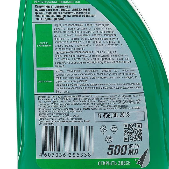 Тоник Bona Forte для орхидей зеленый флакон с триггером, 500 мл — Характеристики
