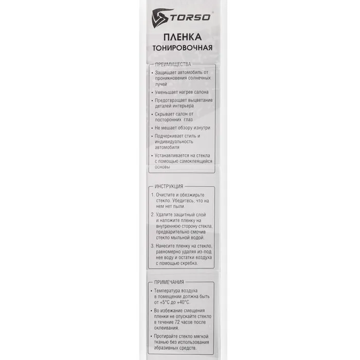 Тонировочная плёнка для автомобиля TORSO, 50×300 см, 20% — Характеристики