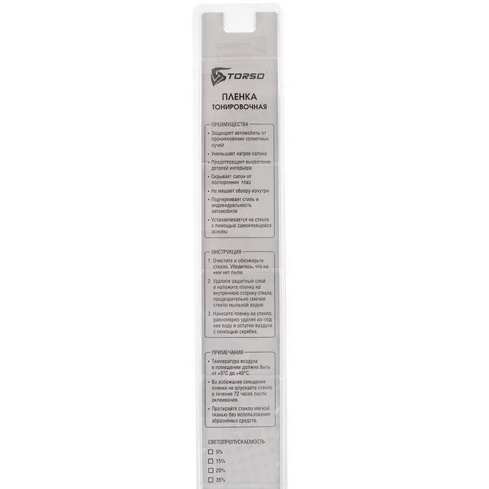 Тонировочная плёнка для автомобиля TORSO, 75×300 см, 15% — Характеристики