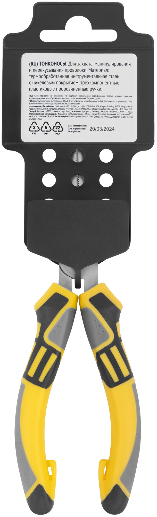 Эти тонконосы от FIT с длиной 160 мм станут незаменимым инструментом для специалистов, работающих с мелкими деталями или в труднодоступных местах. Их можно использовать для захвата, удержания и сгибания проводов или небольших металлических деталей, что делает их идеальными для электромонтажных и ремонтных работ.